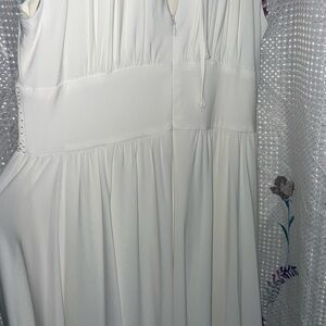 This elegant cream sleeveless dress is perfect for any occasion. Its sophisticated design offers a timeless look.