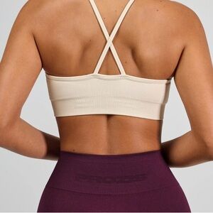 Elevate your workout wardrobe with this elegant cream sports bra, designed for ultimate comfort and support.