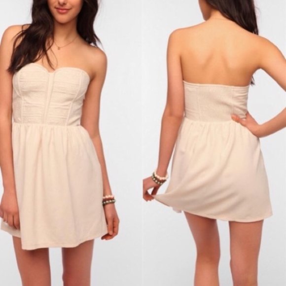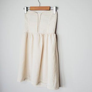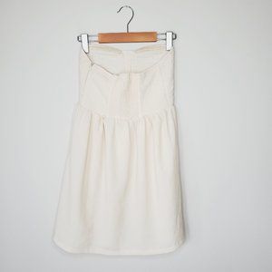 This elegant cream strapless dress is perfect for any occasion. Its timeless design offers a flattering fit and a chic look. Ideal for both casual and formal events.