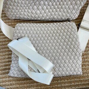 This elegant cream woven tote bag is perfect for any occasion. Its stylish design and neutral color make it a versatile addition to your wardrobe.