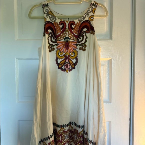 This elegant cream dress features a vibrant multicolor pattern, perfect for any occasion. The intricate design adds a touch of boho sophistication and style.