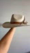 Add a touch of elegance to your wardrobe with this stylish women's hat. Featuring a classic cream color and a tan band, it is beautifully accented with gold rings. Perfect for any occasion. Never worn. Comes with hat bag!