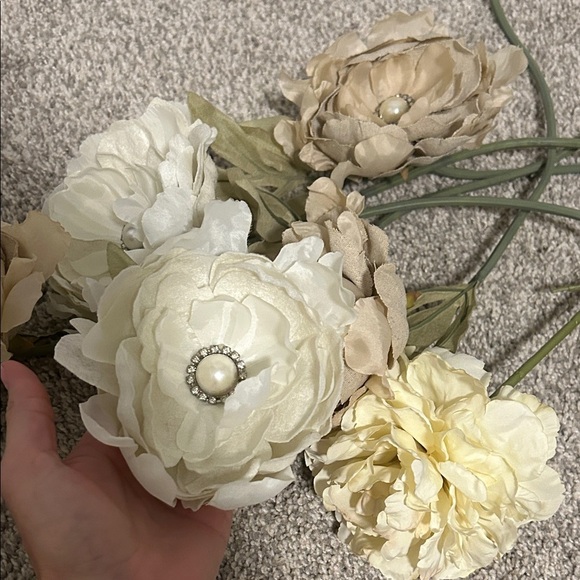 Enhance your home decor with this elegant floral bouquet featuring cream and white blooms. Perfect for adding a touch of sophistication to any room.