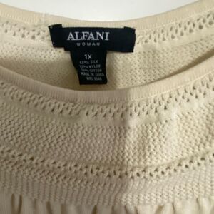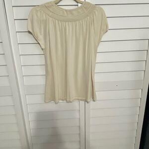 This elegant cream top features a stylish design perfect for any occasion. Its soft fabric and chic look make it a must-have addition to your wardrobe. Perfect condition except for one tiny pulled string as pictured. Not noticeable.