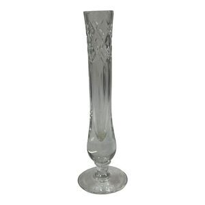 Elegant Crystal Bud Flower Vase 7" Pedestal Diamond Cut Glass At Top Narrow Thin