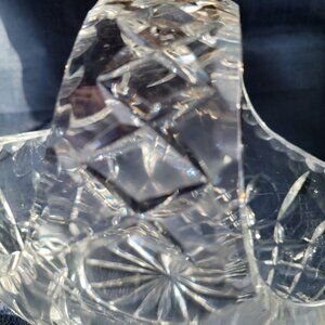 Elegant Cut Crystal Basket Bowl With Diamond & Fan Pattern