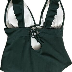 Dive into style with this elegant dark green one-piece swimsuit. Perfect for a chic beach look.