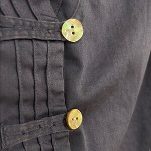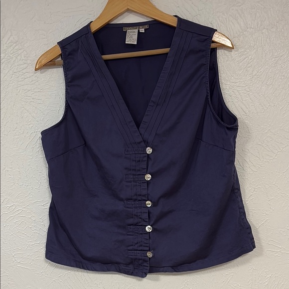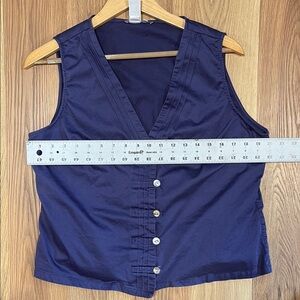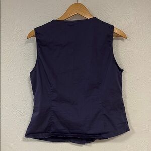 Women’s cotton stretch vest with a natural pearl button-front design. See photos for measurements. It’s a deep dusty purple. Last photo is best representation of color. No flaws that I can find. Pet friendly smoke free home.