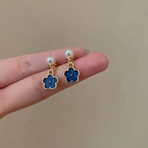 ✨🆕✨ Elegant Darling Blue Floral Pearl Stud Earrings - Gold Plated Post✨