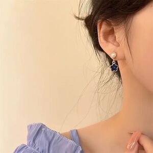 ✨🆕✨ Elegant Darling Blue Floral Pearl Stud Earrings - Gold Plated Post ✨