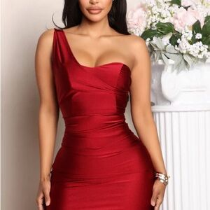 Elegant Deep Red One-Shoulder Gown Dress, Sz M