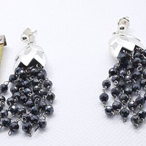 Elegant Designer Rebecca Hook sterling silver and hematite drop earrings