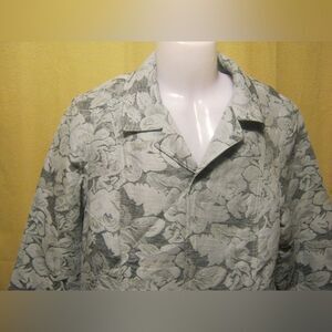 Step into effortless sophistication with this stunning mid-length blazer from Dialogue. Its elegant floral pattern in green and cream is woven from a luxurious linen-cotton blend, offering a timeless baroque-inspired style.