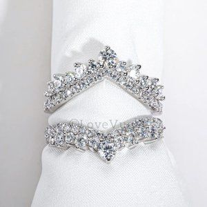 Elegant Diamond Moissanite Chevron Ring Band Enhancer