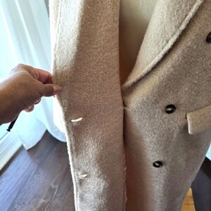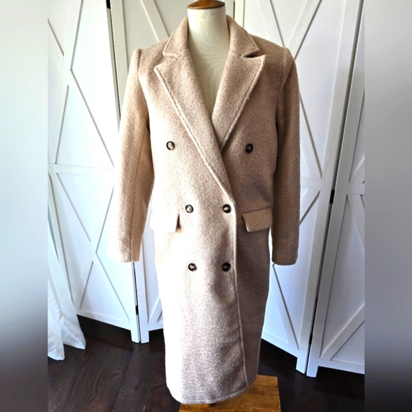 Embrace warmth and style with this elegant cream double breasted jacket. Perfect for adding a chic touch to your wardrobe.