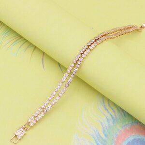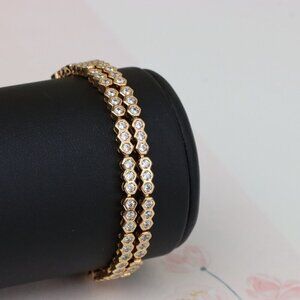This stunning bracelet features a double-layer design adorned with shimmering hexagonal-cut crystals, perfectly suited for elevating your everyday or evening look.