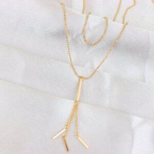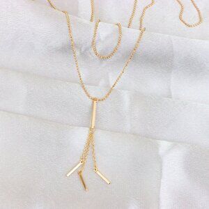 Chic and modern layered design featuring a sleek vertical bar and triple drop chains for a stylish, fashion-forward look. Perfect for daily wear or special occasions.