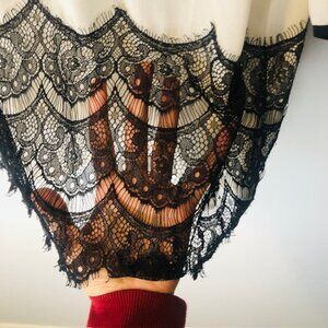 Elegant DownEast Sheer Lace Long Sleeve Blouse (Black/White) Size M - Ti…