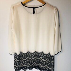 Elegant DownEast Sheer Lace Long Sleeve Blouse (Black/White) Size M - Timeless Chic!