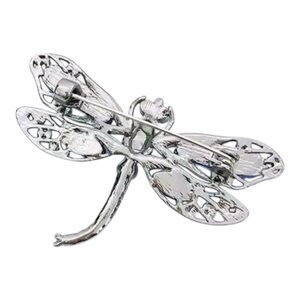 Stunning dragonfly brooch. Features blue and black crystals. Perfect for adding elegance to any outfit.