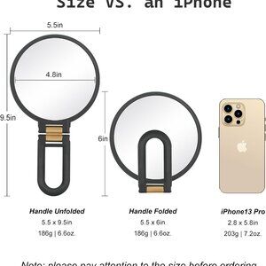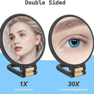 Features: This chic round mirror features both 1x and 30x magnification, so you can see everything clearly — from everyday reflections to tiny details like pores and blemishes. The adjustable handle and 360° rotatable stand make it super versatile — use it handheld, prop it up on a surface, or hang it. Lightweight at just 6.6 ounces, it's designed for travel and easy to pack in your bag.