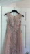This stunning evening gown features intricate embellishments and a delicate pink hue, perfect for special occasions.