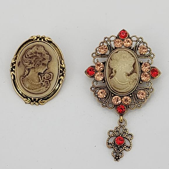 Elegant Embossed Cameo Brooch Vintage Style With Bonus Matching Cameo Brooch