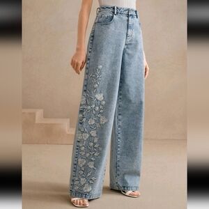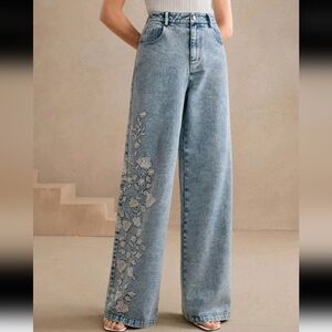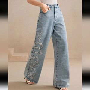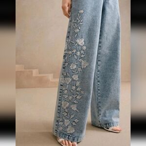 Elegant Embroidered Floral Design Ladies Long Pants,Suitable For Women