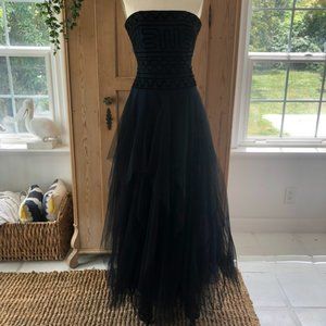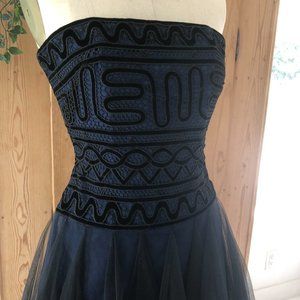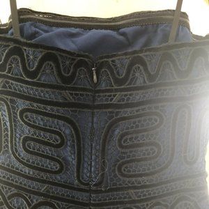 Elegant Embroidered Navy/Black Flowing Evening Gown, BCBGMaxAzria