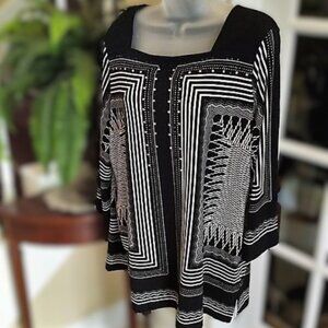 Eligant tunic by Hazel in size medium with sheer fabric and floral styled embroidery