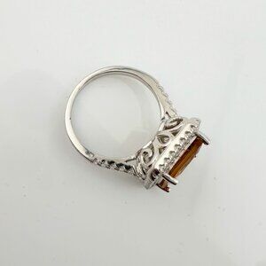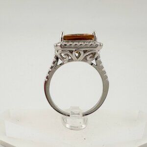 Large lab created Sultanite gemstone. Smaller white stones surround larger stone & follow partially down sides of band. Eye-catching ring that is sure to please.