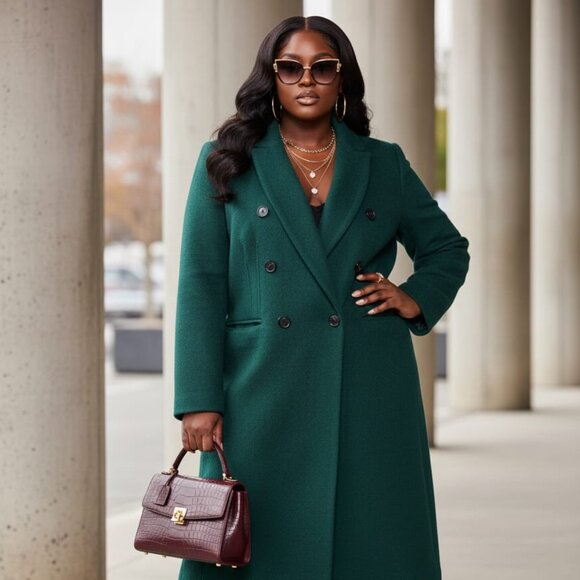 Elevate your winter wardrobe with this stunning emerald green longline overcoat!