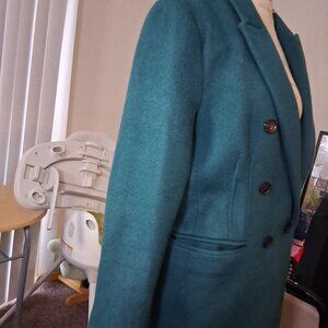 Elegant Emerald Green Double Breasted Wool Blend Long Coat