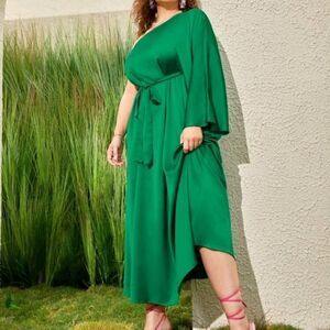 Elegant Emerald Green One Shoulder Dress Plus 1X