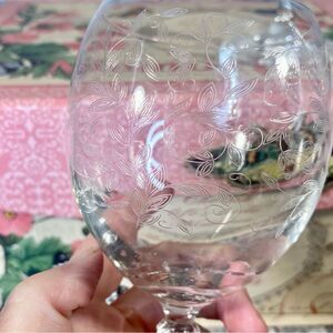 Elegant Etched Crystal Wine Glass Set of Two Tall Stemmed Wine Goblets