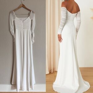 Elegant Eternity White Mesh Ruched Off-the-Shoulder Maxi Dress