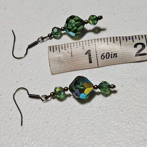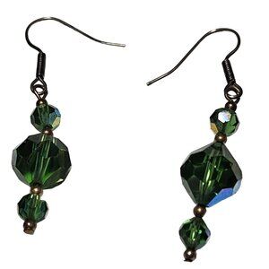 Elegant dangle earrings featuring faceted green glass beads with a subtle shimmer. Lightweight and suitable for both casual and formal wear.
