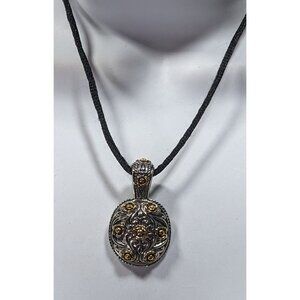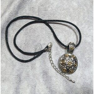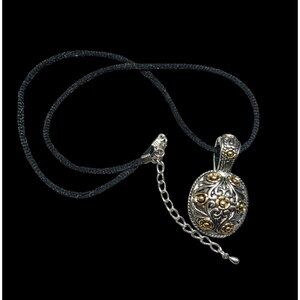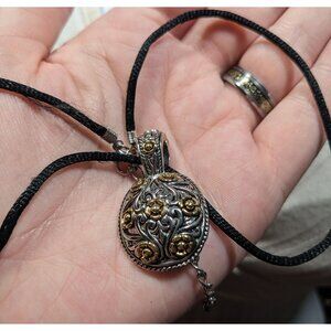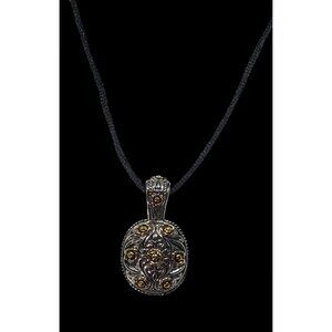 Elegant Fantasy Silver And Gold Tone Floral Pendant Necklace