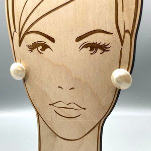Elegant Faux Pearl Button Earrings with Faceted Baroque Look, Vintage Chic Clip