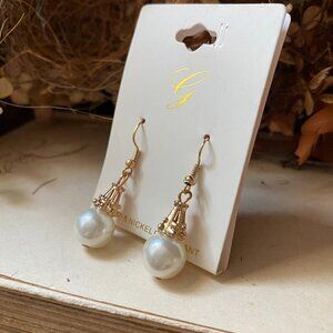 Elegant Faux Pearl Drop Earrings Gold Tone