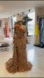 Step into elegance with this stunning feathered evening gown. Adorned with intricate sequin details, this dress is perfect for making a statement. The beautiful blend of navy and tan colors adds a touch of sophistication. Custom made in Kosovo for 2400