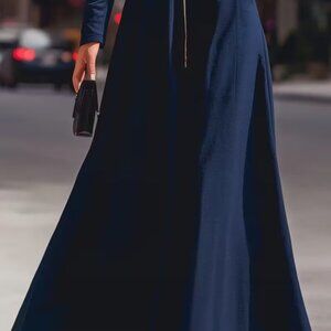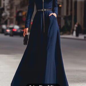 Women's Elegant Floor-Length Evening Gown - A-Line Floor-Length Dress with Lapel Collar & Belted Waist, Slim-Fit Long Sleeve Zipper Back Closure, Structured Tailoring for Formal Events, Parties, Galas - Hand Washable Luxury Party Dress (Solid Color, Floor-Length A-Line Silhouette, Waist-Cinching Belt, Stand Collar, Zipper Detail, Structured Fit, Suitable for Spring/Summer) - Queen-like), Wedding Dresses For Women Elegant Classy, Black Tie Event Dresses For Women,