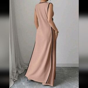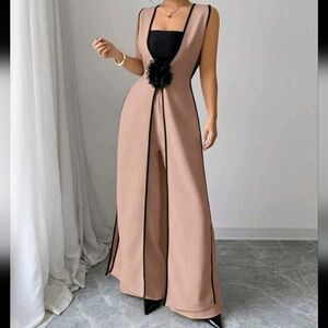 Elegant Floral Colorblock Sleeveless Knit Long Cardigan Vest And Leg Pants Set