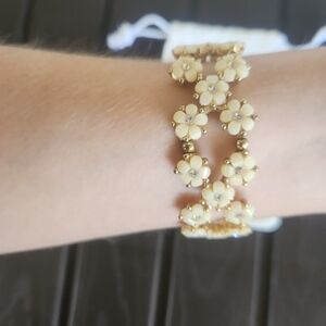This elegant floral bracelet features delicate gold accents, perfect for adding a touch of sophistication to any outfit. Ideal for any occasion. set of 2 with bag.