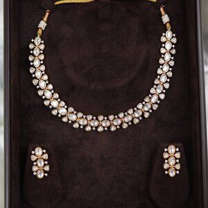 "Elegant Floral Kundan Necklace & Earrings Set, JP40