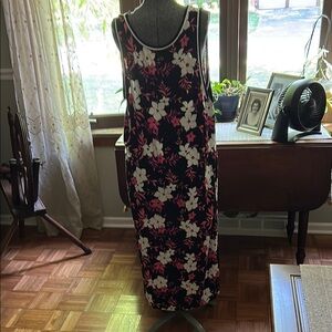 Step out in style with this elegant floral maxi dress. The black and pink design offers a chic and timeless look, perfect for any occasion.