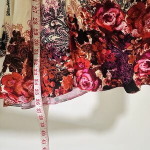 This elegant floral midi dress features a stunning blend of red and purple hues. Perfect for any occasion, it offers a flattering fit and timeless style.