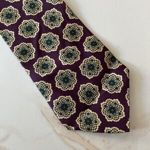 Elevate your style with this elegant floral patterned tie. The intricate design features a blend of purple and green hues, perfect for any formal occasion.