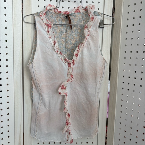 Elevate your wardrobe with this elegant sleeveless blouse featuring delicate floral ruffles. The soft cream hue adds a touch of sophistication to any ensemble.