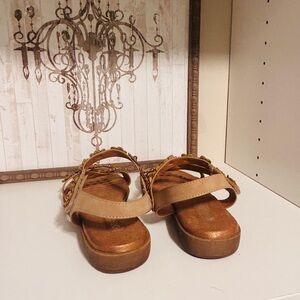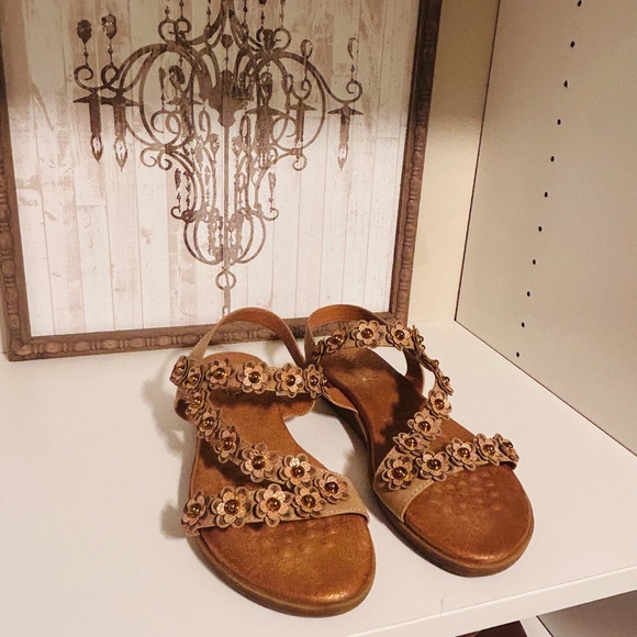 Elevate your look with these elegant floral sandals. The tan color adds a touch of sophistication to any outfit. Only worn twice.